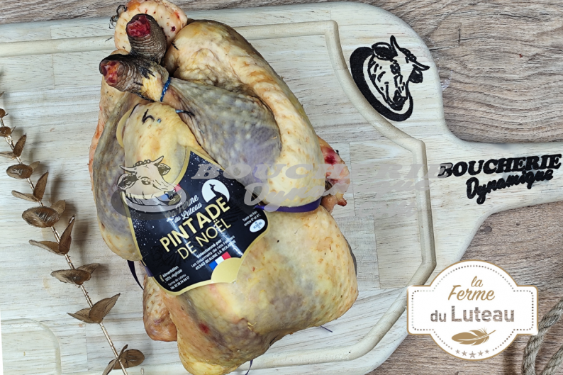 La Pintade de décembre de la Ferme du Luteau est un produit d'exception, élevé avec soin et respect des traditions agricoles. La pintade, en tant que volaille, est particulièrement prisée pour sa chair tendre, savoureuse et légèrement plus ferme que celle du poulet, tout en étant plus délicate que celle d'autres volailles. La Pintade de décembre spécifiquement se distingue par sa période d'élevage et sa qualité de chair. Elle est souvent associée aux repas de fête, en particulier ceux de Noël, en raison de sa texture raffinée et de son goût unique.