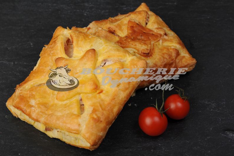 Dégustez nos feuilletés jambon- fromage par 2, des pâtisseries salées croustillantes et gourmandes. Réalisés avec une pâte feuilletée dorée et légère, ils sont généreusement garnis de jambon savoureux et de fromage fondant, pour un mariage parfait de saveurs.