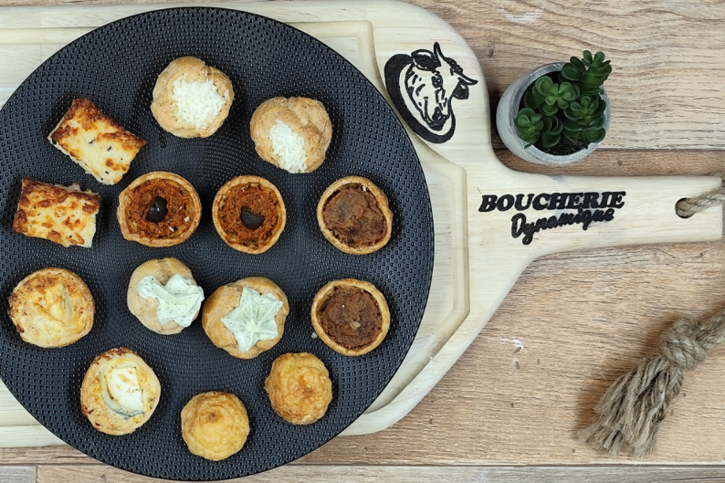 Plateau cocktail salé 42 pièces à déguster tiède en entrée ou en amuse-bouche à l’apéritif. Sa gourmandise ravira vos convives ! Composé de 6 mini-choux aux escargots, 6 mini-choux aux fromages, 6 mini croque-monsieurs à la truffe noire 3%, 6 mini-gougères à l’emmental, 6 mini-pizzas, 6 mini-quiches rillons fromage de chèvre, 6 mini-tatins de pomme au boudin noir.